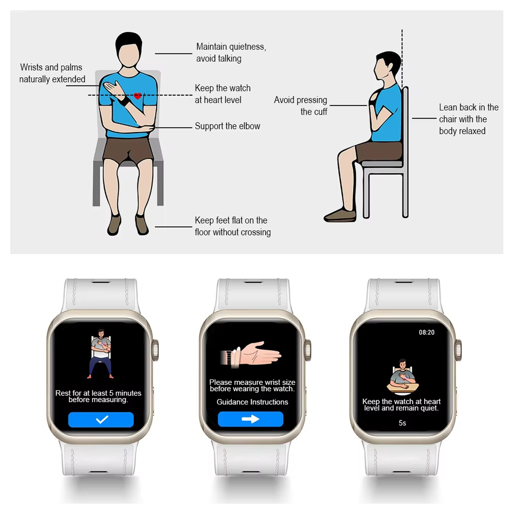 The Pilotax Blood Pressure Smartwatch uses an oscillometric monitoring system with a micro pump and elastic air cuff to deliver accurate blood pressure measurements. Through the connected app, you can easily view AI-generated charts and detailed data, helping you track changes and understand your blood pressure status anytime.