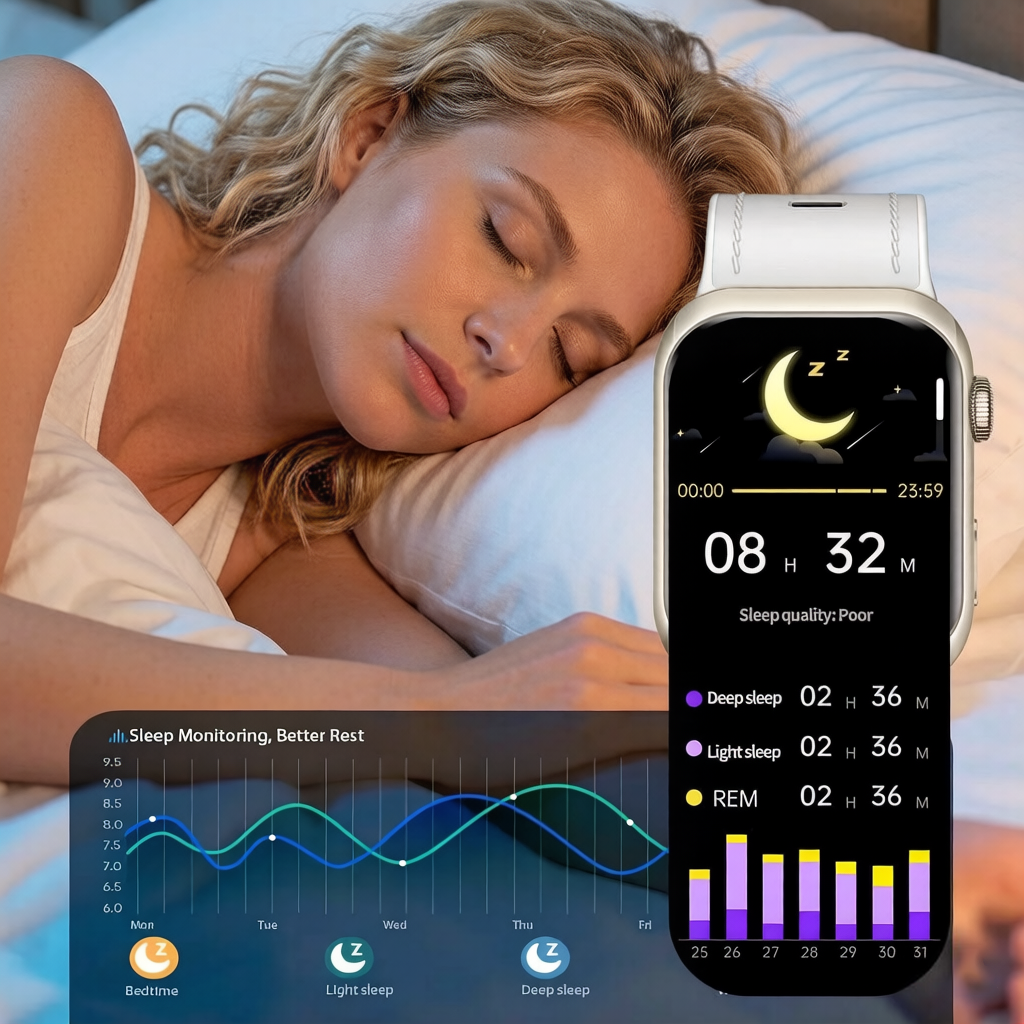 - Sleep Monitoring – Tracks deep, light, and REM sleep.